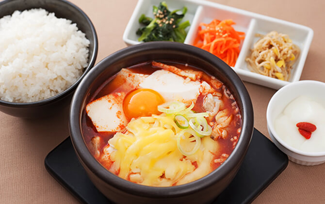 韓国生まれの手作り豆腐がたくさん入った“スンドゥブ”の専門店。オリジナルのスープでさらに美味しく、種類も豊富!! 一度食べたらハマルお鍋。具沢山なのにヘルシーなお鍋として愛されています。夜は美味しいサイドメニューも豊富にご用意しております。